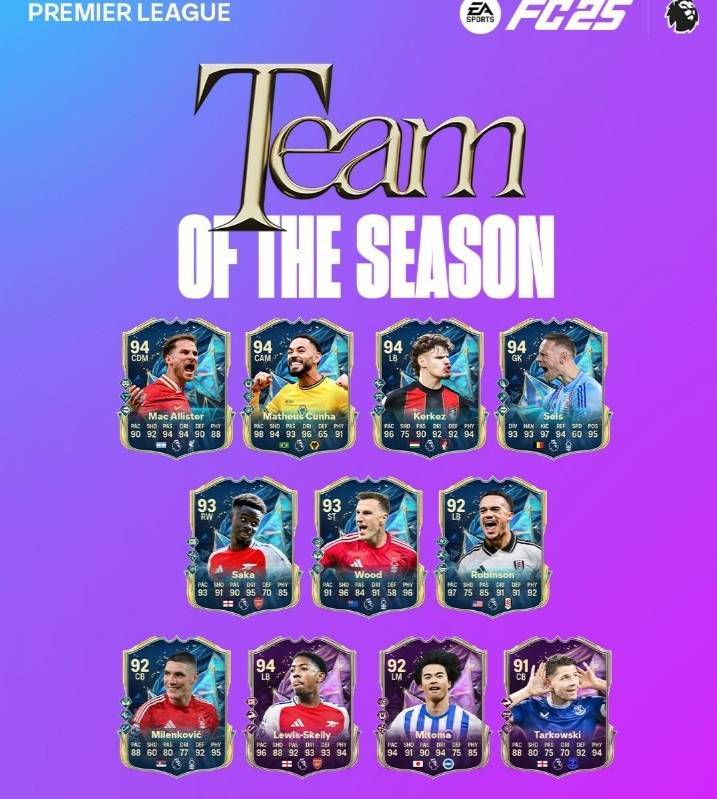 FC25英超赛季最佳阵:利物浦、阿森纳各5将入选,B费、三笘薫在列